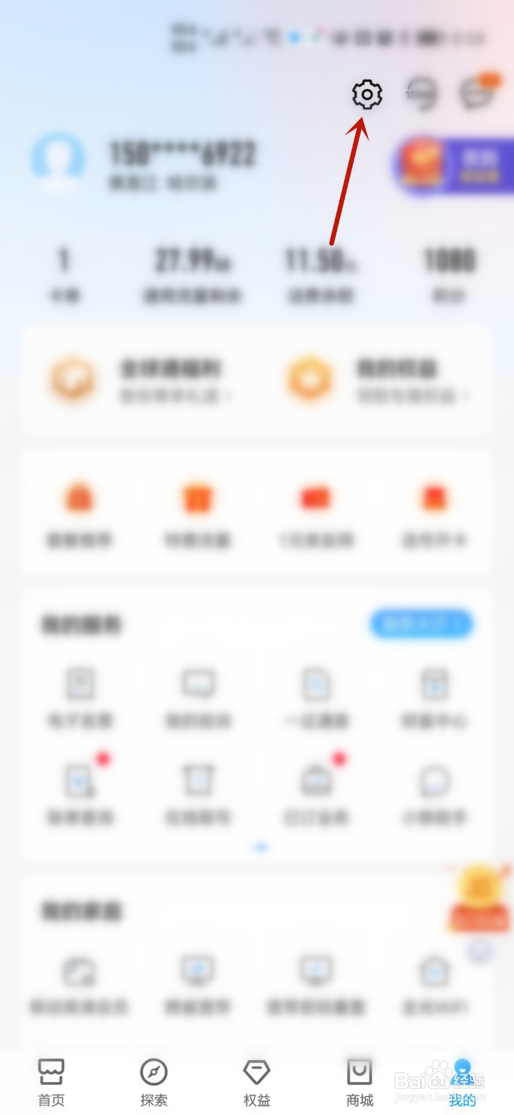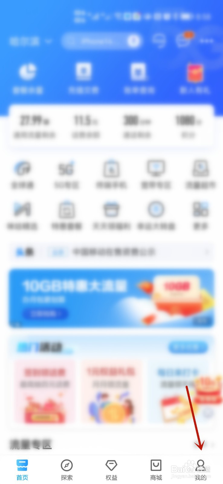 在中国移动App,打开我的页面。