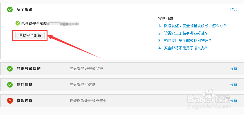 8/8点击设置后,下面就会弹出图下图所示的界面,我们可点击“更换安全邮箱”按钮,按照步骤操作后,我们就能使用更改后的邮箱来作为新的登录名啦!