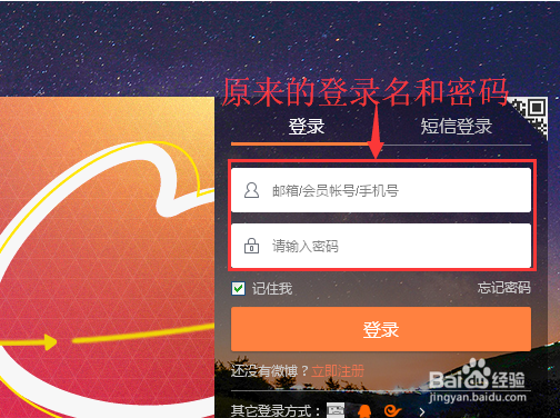 首先,我们在电脑上打开新浪微博的首页,在其中输入自己原来的登录名和密码,输入完成点击登陆。