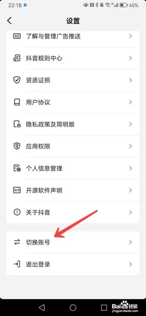 打开华为手机抖音APP,在设置里点击切换账号。