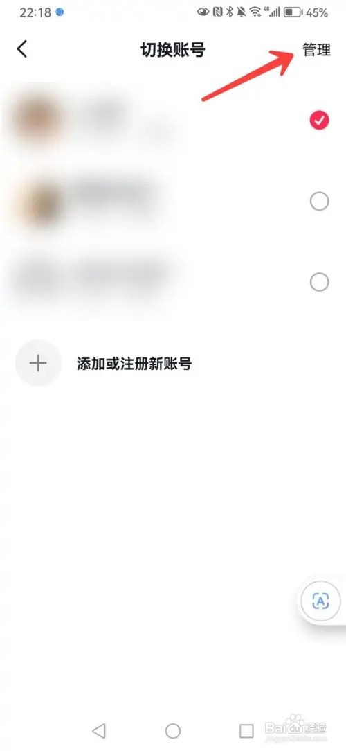 2/3在切换账号的页面里点击管理。