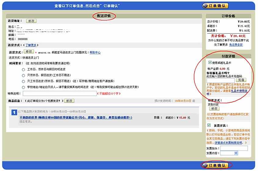 2. 在订单确认页面,您可以查看配送详情和付款详情,确认无误后点击“订单确认”。