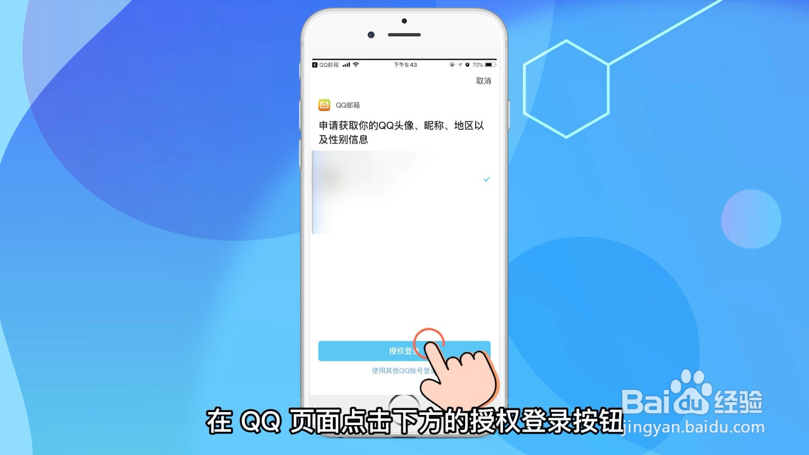 在QQ邮箱的添加账户页面选择qq邮箱登录,点击手机qq登录,点击授权登录,输入密码,点击确定,验证成功点击进入邮箱即可。品牌型号:华为 p40系统版本:EMUI 10.1软件版本:qq邮箱6.2.8方法/步骤1/4分步阅读