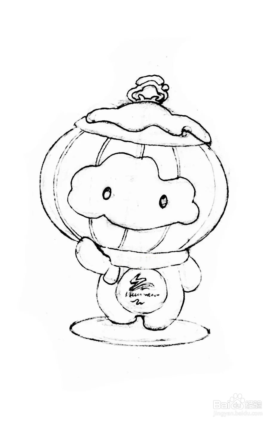 首先用2B铅笔画出雪融融的形体,并画出线稿。