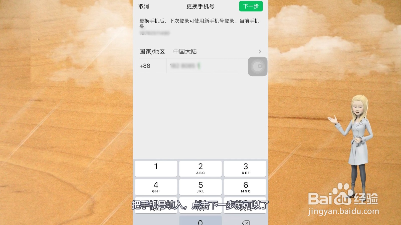 翻转至更换手机号界面,把手机号填入,点击下一步就可以了。
