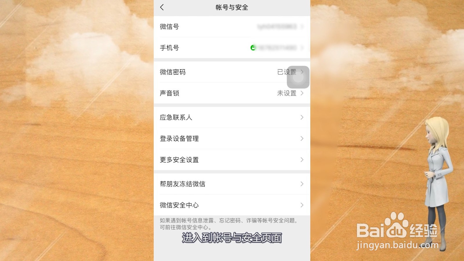 进入到帐号与安全页面,找到手机号选项,可以看到绑定的手机号。