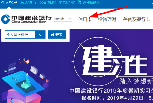 2、进入官网后,点击上面一行的”信用卡“,进入。