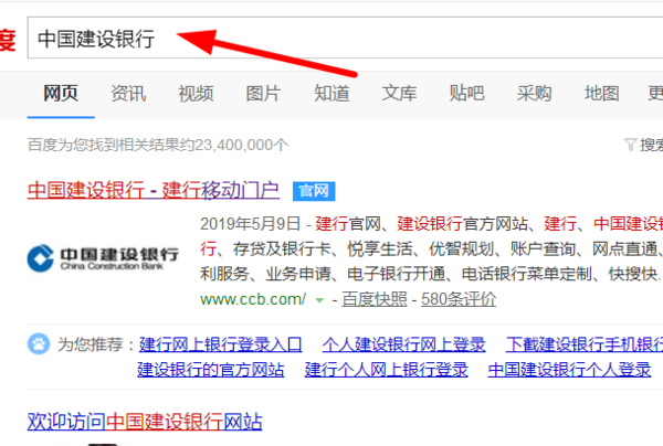 1、通过百度搜索“中国建设银行”,找到建设银行官网并点击进入。