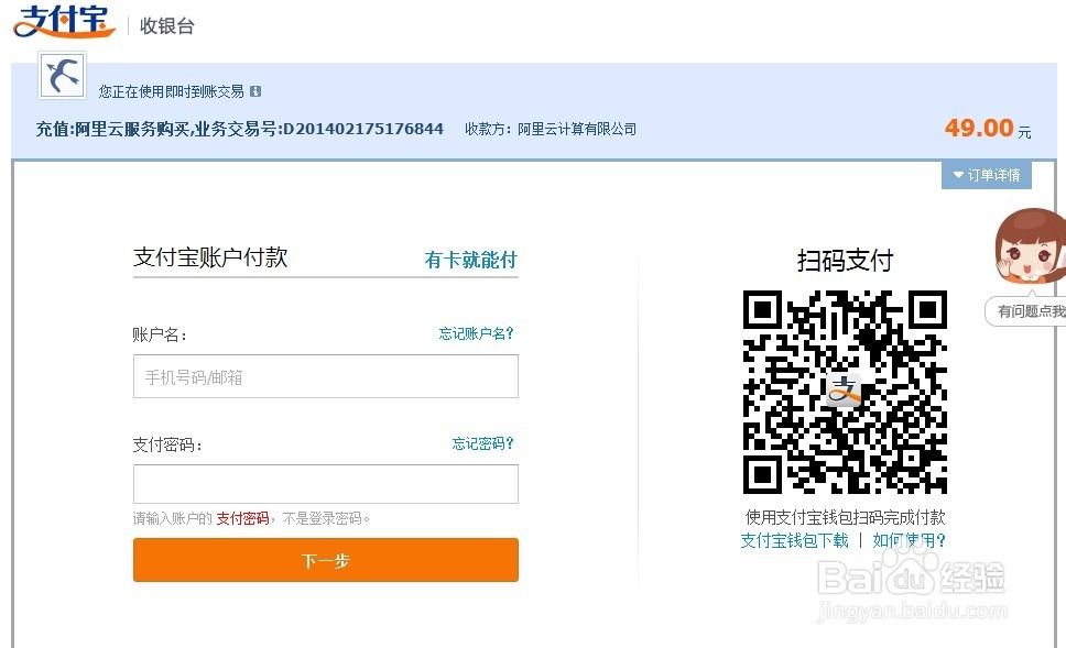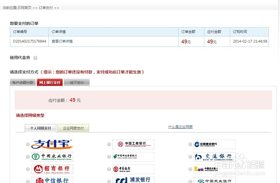 5/7选择一个支付方式,我一般都是使用支付宝支付的。也可以使用网银支付宝。
