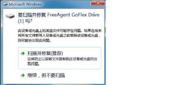 5.如果弹出如图所示的窗口,就表明移动硬盘正常显示磁盘盘符。