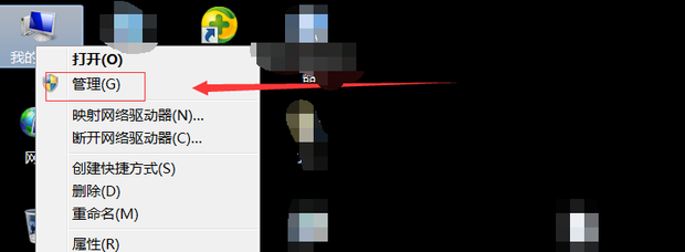 1.首先右键点击“计算机”,在下拉菜单中左键点击“管理”。