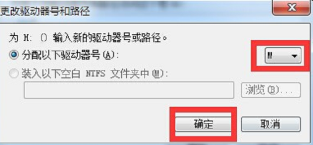 4.然后弹出的新页面上,左键点击“磁盘盘符”,在下拉菜单中点击新的未被使用的盘符,点击“确定”即可。