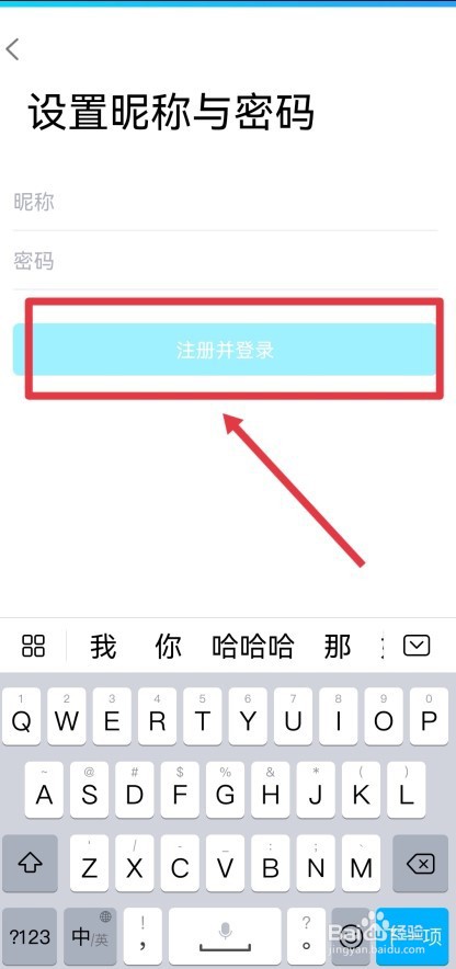 6/6在页面中,输入QQ的昵称与密码,再点击“注册并登陆”即可。
