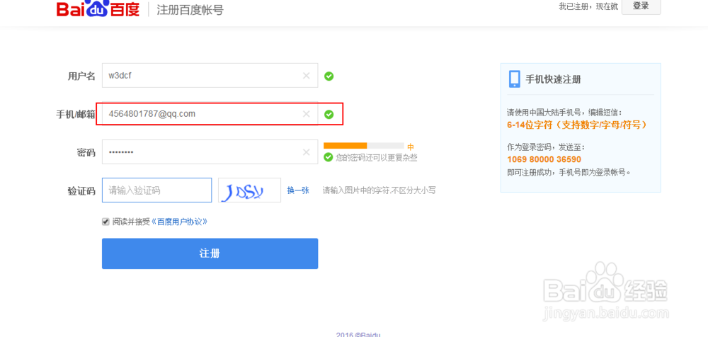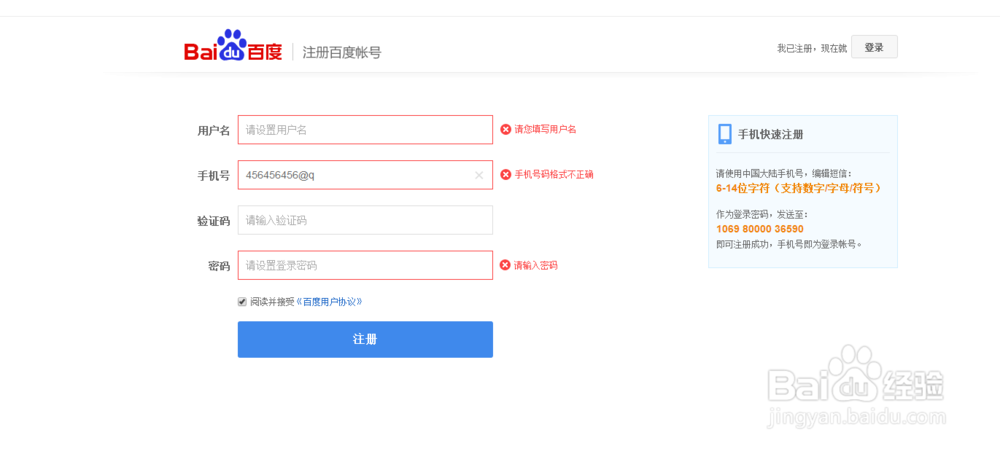 6/6输入邮箱也不会报错,是可以注册的,百度用了一种技术单点登录,注册了这个账号在其他百度的应用也能登录