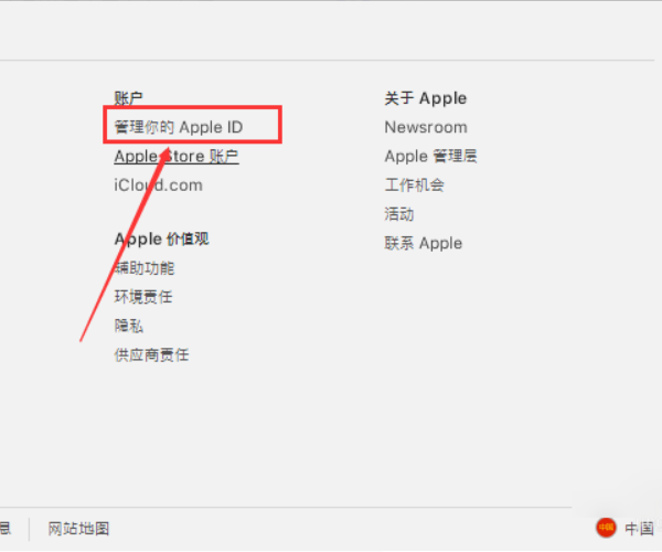 2、然后在页面的底部找到管理你的Apple ID选项,点击它。