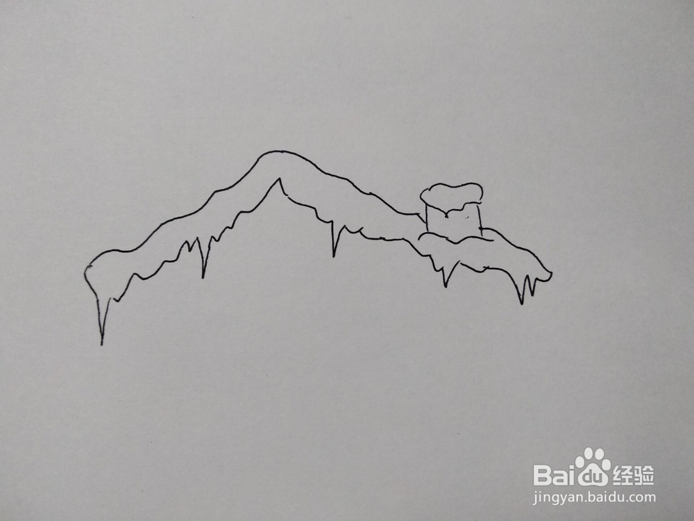 4/7接下来用波浪线画出房屋两边的墙,然后画好房屋下面的积雪。