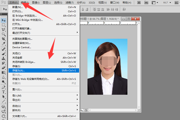 8、图片位置调整好以后点击文件,选择存储为按钮。