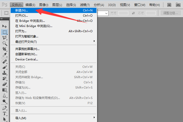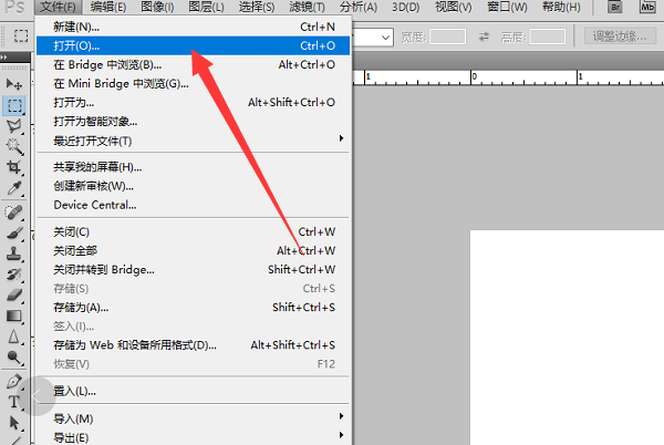 4、新建画布完成以后点击左上角的文件,选择打开按钮。