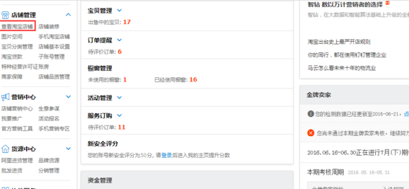 1、进入卖家中心,点击左侧菜单栏的店铺管理,点击查看淘宝店铺即可。