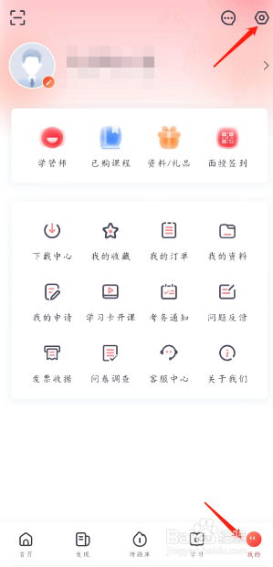 打开优路后,在“我的”页面点击右上角的“设置”图标,如图所示