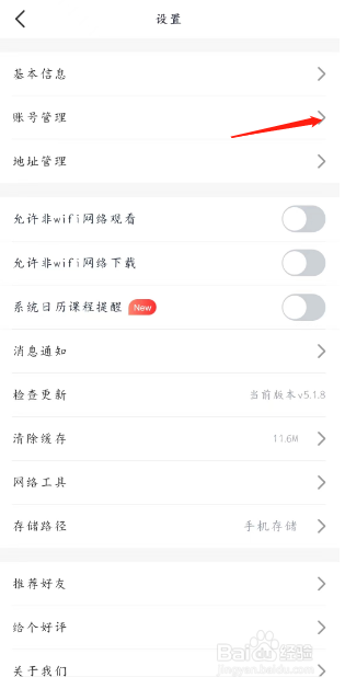 2/4在“设置”页面我们可以看到“账号管理”,我们点击“账号管理”