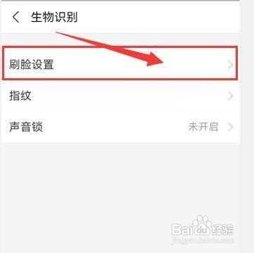 如附图所示。我进入界面,点击(生物识别),进入页面内。