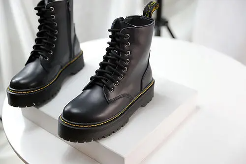 一般真皮的马丁靴都不会有折痕,因为真皮比较软,尤其羊皮,绵软舒适,一般不会有折痕的,还有软牛皮也是,所以一般真皮的鞋子价格都会贵一些,但是穿着会更舒适,更和脚。
