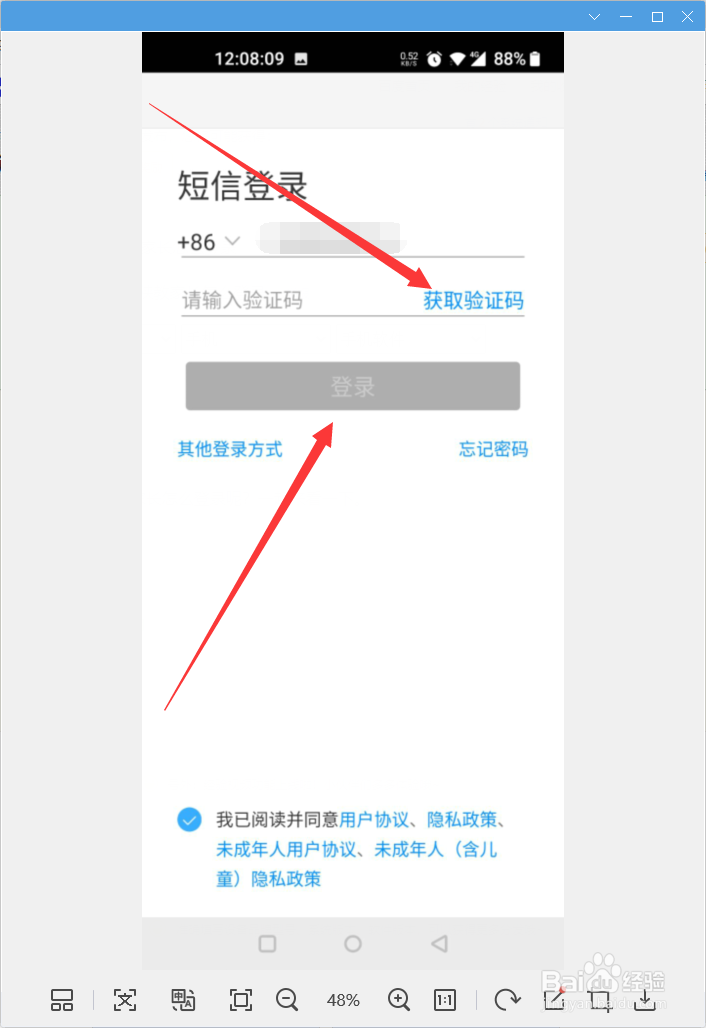 4/5短信登录是输入注册过的手机号,然后输入获取到的验证码登录即可。