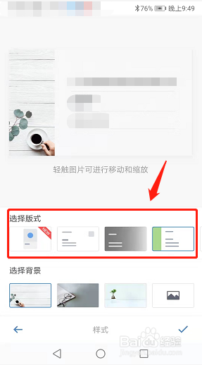 5/6到了名片编辑页面就点击选择版式,在下面的选项中选择自己喜欢的版式
