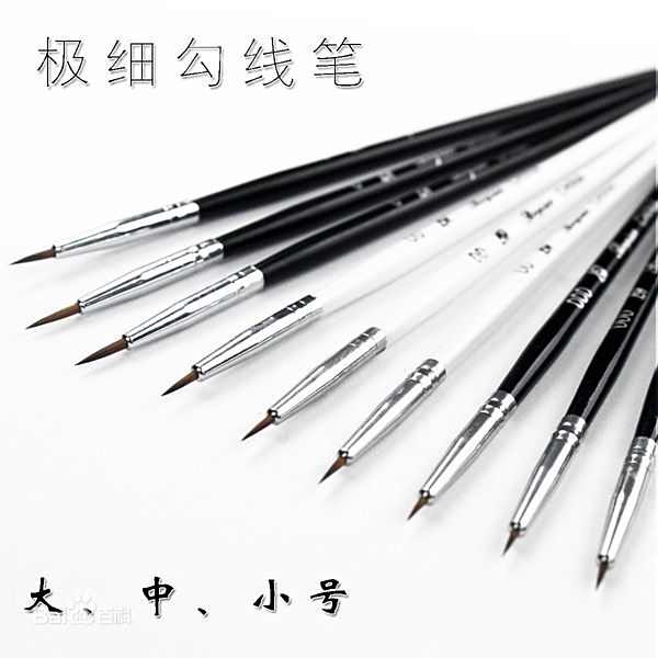 用于绘画创作,尤其是工笔绘画,漫画创作,水粉创作时对作品的勾勒。线条较细,多为狼毫勾线笔。笔头有大小长短之分。