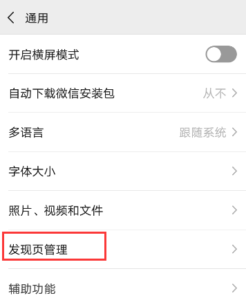 三、在通用设置界面,点击打开“发现页管理”选项。
