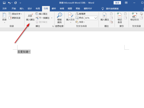 二、选择需要引用的文字,点击“引用”,选择“插入脚注”。