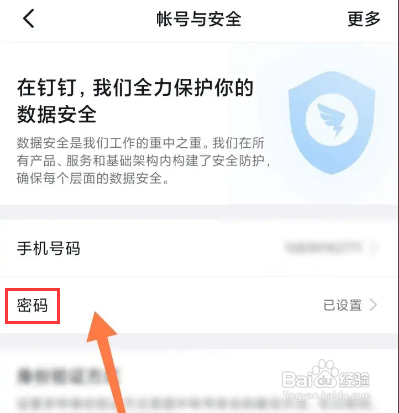 3/3最后点击“密码”,输入旧密码,在设置新的密码,即可修改钉钉登录密码,如图。