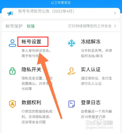 2/3其次在安全心中页面,点击“账号设置”进入,如图。