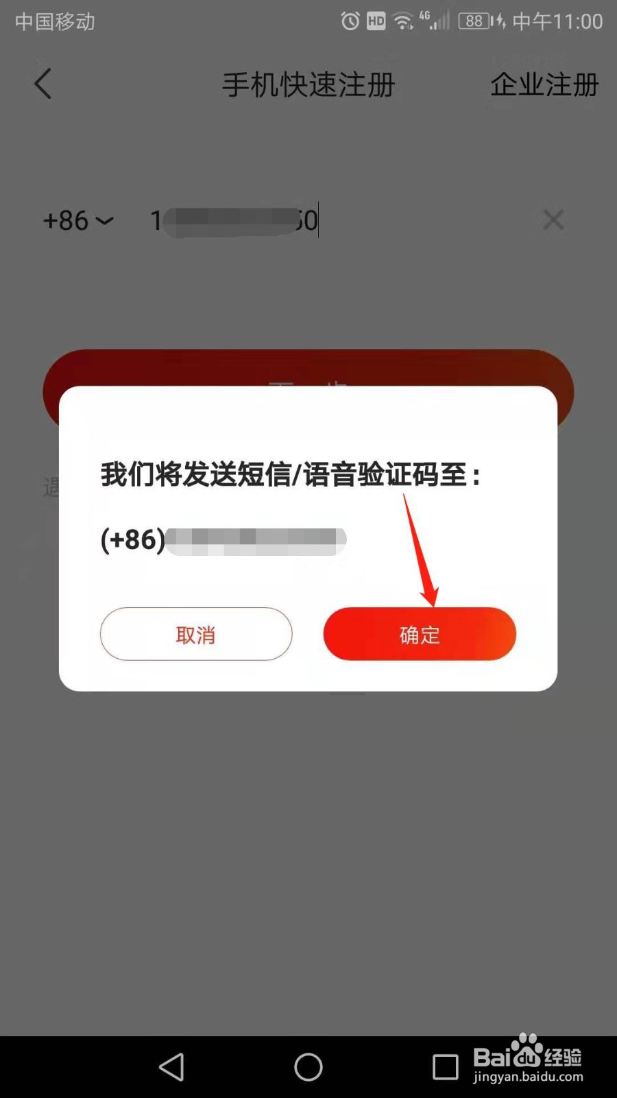 8/10输入注册手机短信收到的验证码,然后点击“下一步”。
