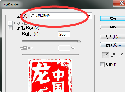 3、然后在开放的样本选择位置,使用吸管工具吸收需要的颜色区域,例如点击红色的位置。