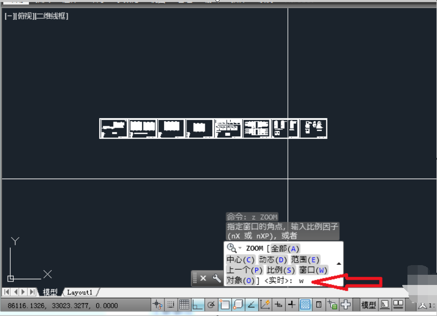 4、通过快捷命令ZOOM(Z)进行放大和缩小,首先我们来看输入命令后的提示