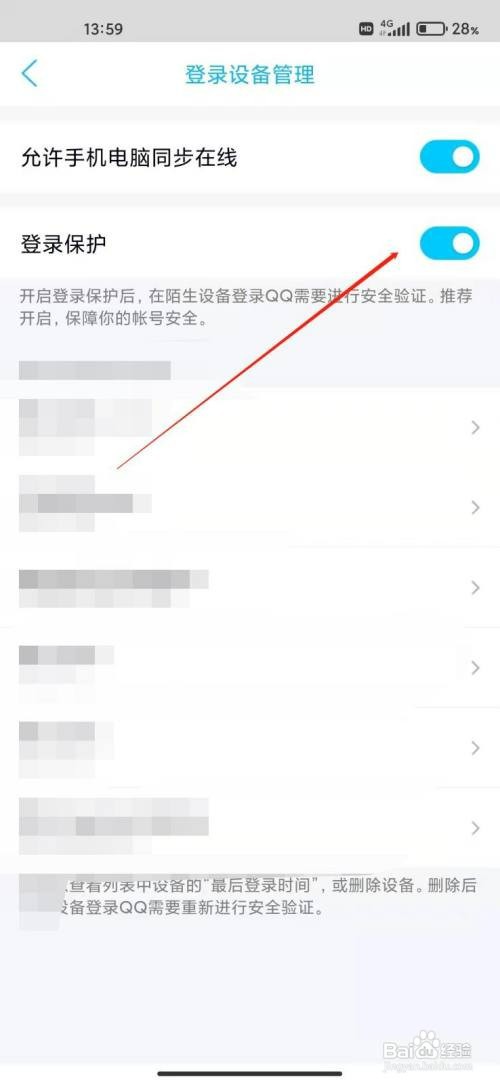 进入登录设备管理设置,点击登录保护即可