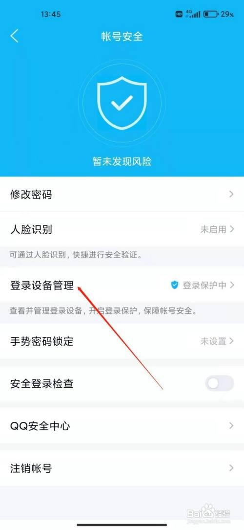 进入账号安全设置,点击登录设备管理