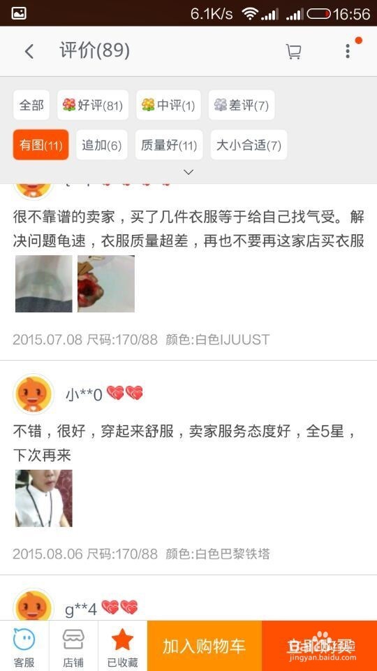 4/54、这是打开商品介绍,先看商品的详细介绍从面料到款式再看店铺以及商品的好评率,看商品好评时要看有图的以及追加的避免有些好评是被刷出来的,从而盲目被骗。
