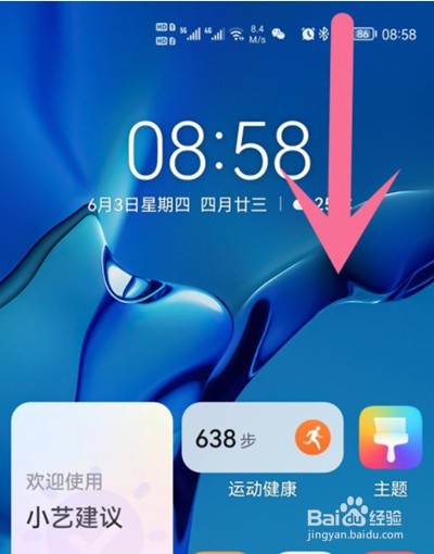 打开手机界面,然后从右侧下拉呼出控制中心。