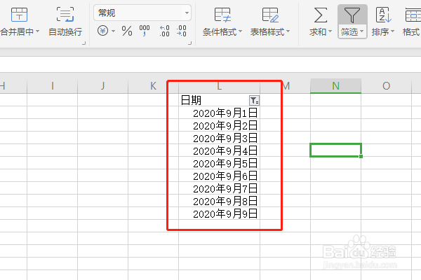 2/5打开之后,选中日期那一列,然后点击上方的筛选图标。