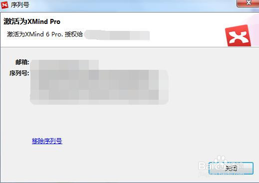 10/10完成激活XMind 6 Pro后,在帮助序列号页面可查看XMind序列号和授权邮箱。