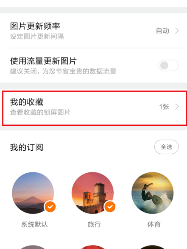 2、接下来,点击选择“我的收藏”选项,即可看到所收藏的锁屏壁纸图片。