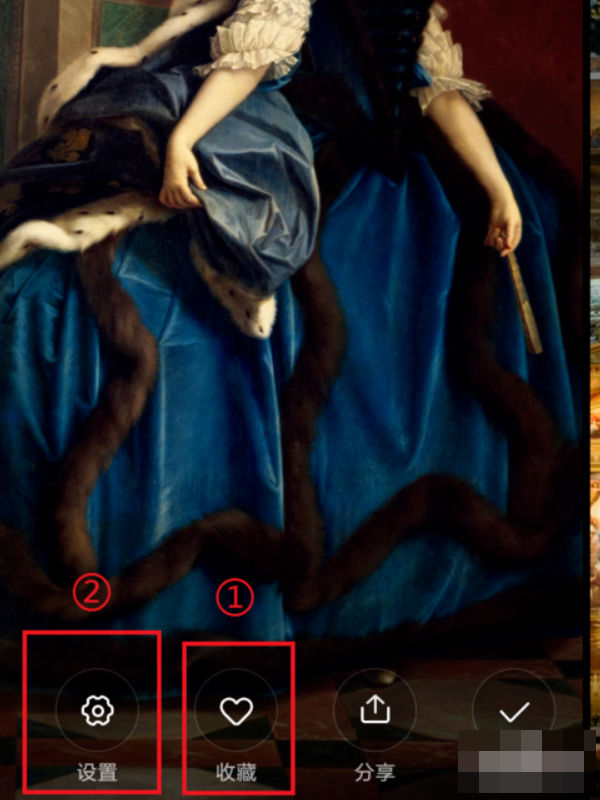 1、打开壁纸首页面,先找到想储存的图片,按照向后顺序点击“收藏-设置”按钮菜单。