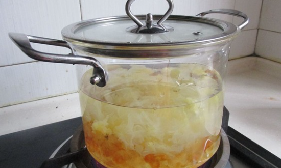 7、冰糖融化后,关火即成,浓稠好喝的银耳桃胶羹就做好了。