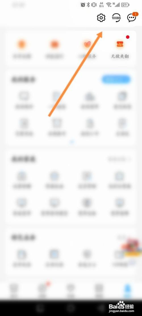 首先打开中国移动APP进入我的页面,点击“设置”选项进入,如图。