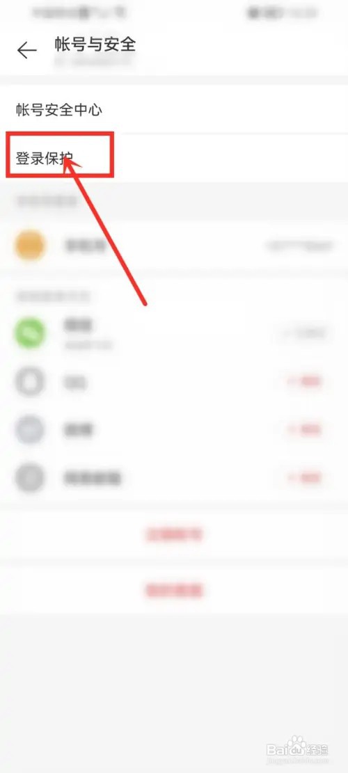 4/5进入到帐号与安全设置界面,点击“登录保护”设置项。