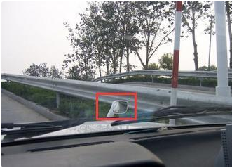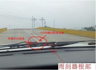 很多考试车都是捷达,我们就以此车为例,每个车都有两个雨刷器,调整好自己的坐姿,看右边雨刷器的根部,当雨刷器根部的点正好落在右边线的延长线的时候,右车轮距边线就正好是30cm,而且这个看点和座椅的高低以及前后都没有关系。
