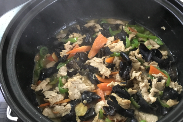 黑木耳炒肉片的用料:猪里脊1条 、 黑木耳20克 、 青椒1个、 胡萝卜半个、 盐适量、 生抽1勺、 鱼露1小勺、 料酒适量 、 生粉少许、 油适量 、 老姜适量。